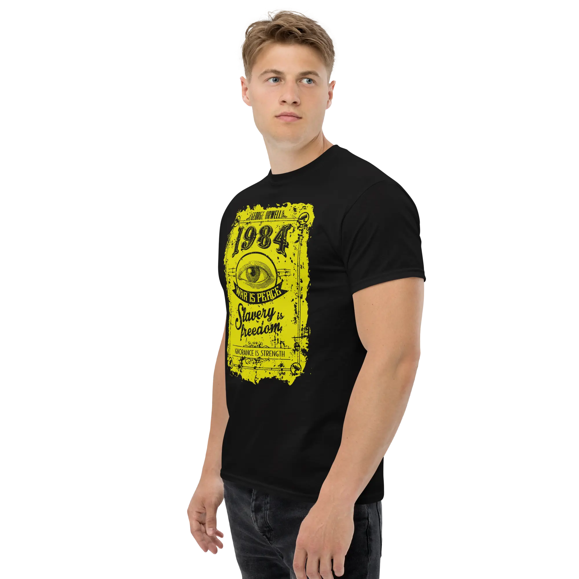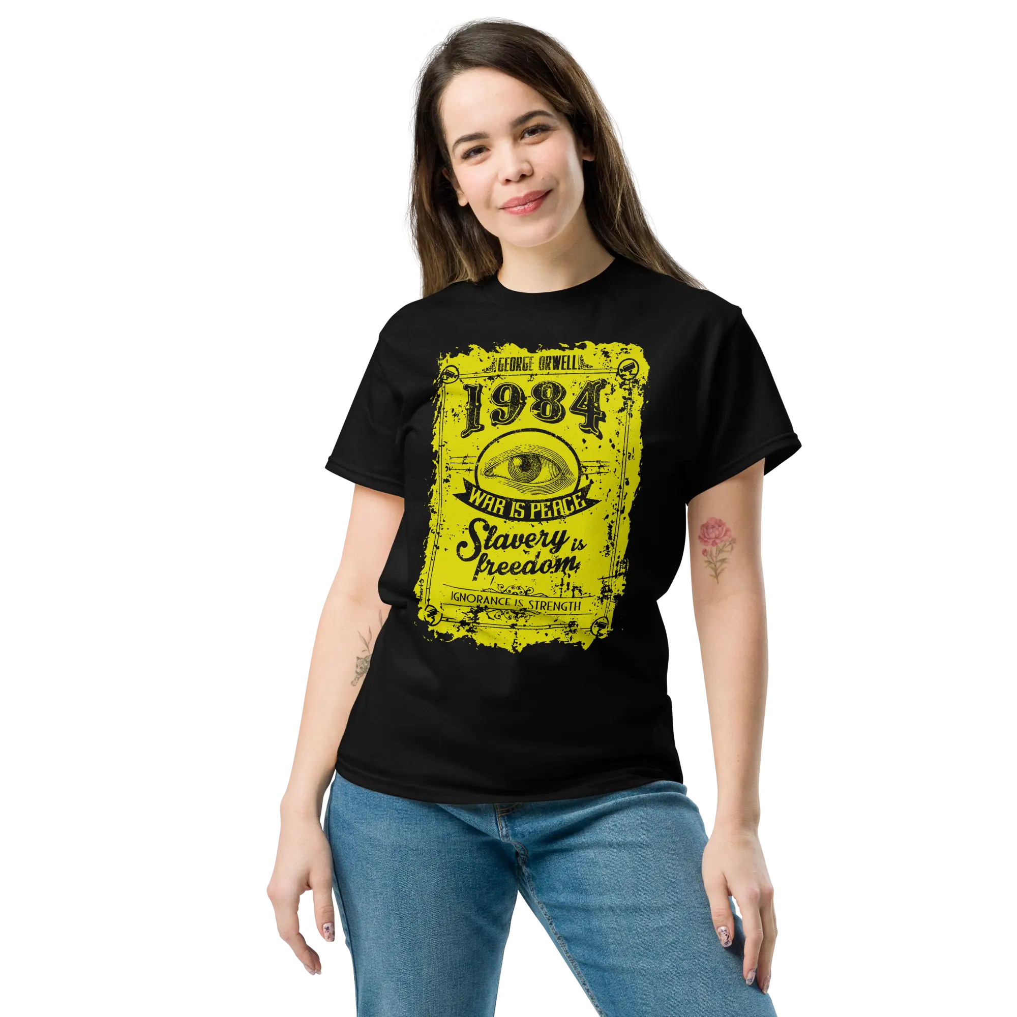 Nuestro diseño captura la fuerza de este clásico imprescindible, recordándote que ‘El Gran Hermano te vigila’. Además, incluye el icónico eslogan del Partido Ingsoc: ‘La guerra es la paz, la esclavitud es la libertad, la ignorancia es la fuerza’. Perfecto para quienes aprecian la literatura y valoran el pensamiento crítico.